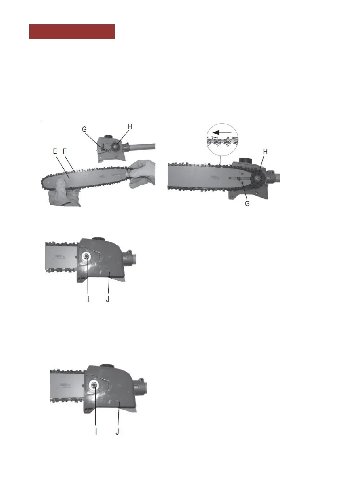 lančani kotač. Šipka sjekača mora se prikačiti u zavrtanj za stezanje lanca (stavka G).