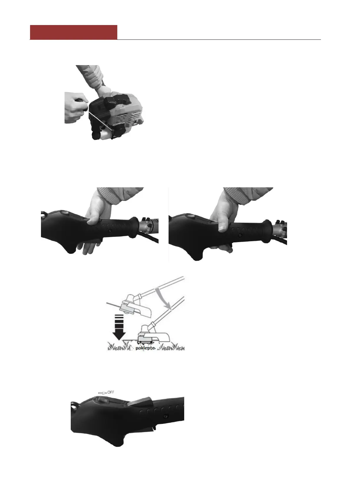 7. Ťahajte páku ručného štartéra až motor neštartuje.