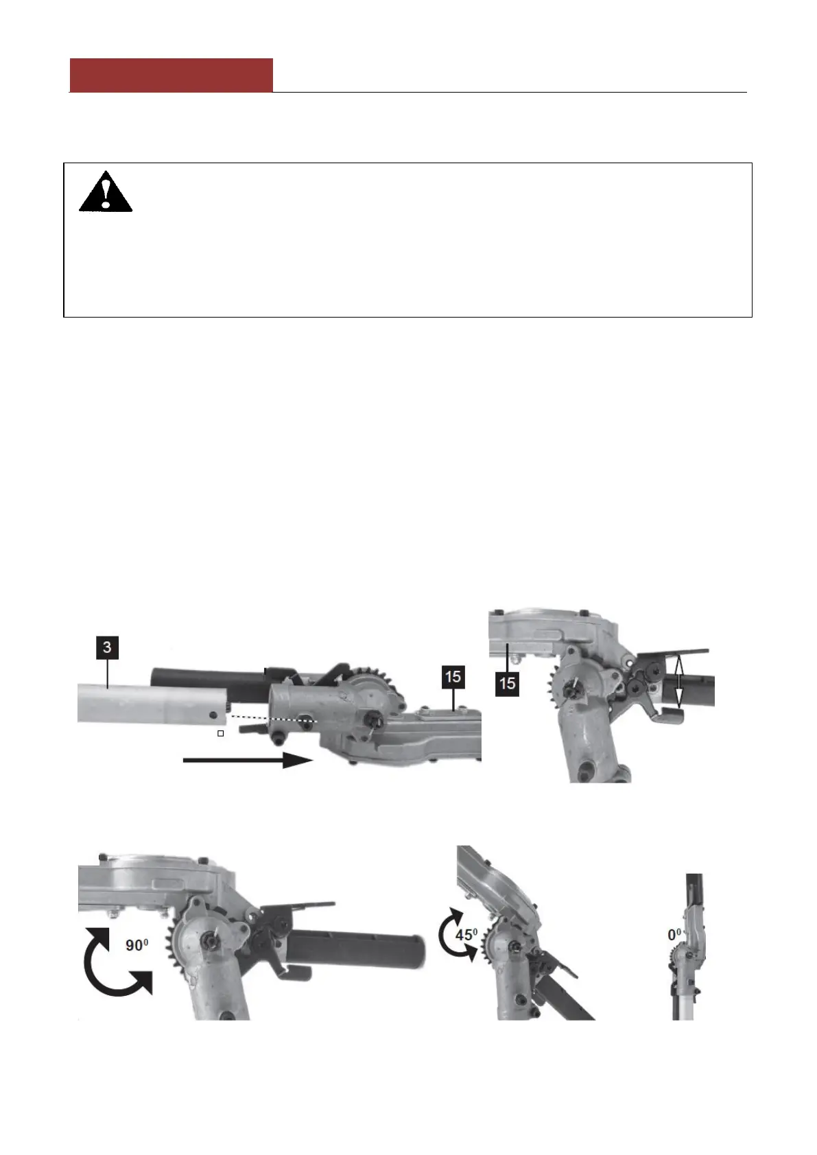 ●Nikdy nespúšťajte motor a neobsluhujte kĺbový plotostrih na živý plot keď je montáž rezačky