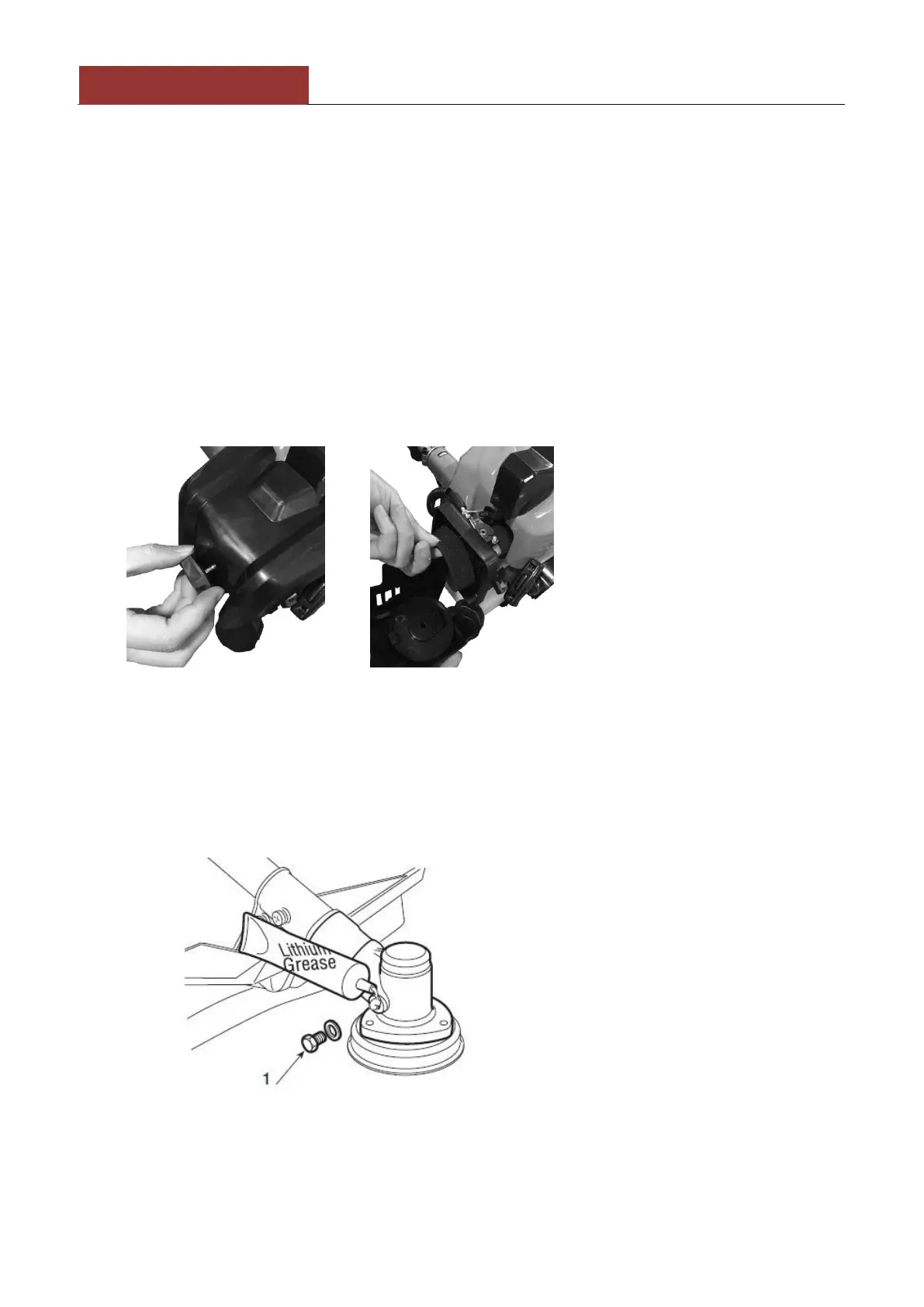 Lubricate with lithium-based grease. Remove the screw (1) and put in the grease, turning the shaft