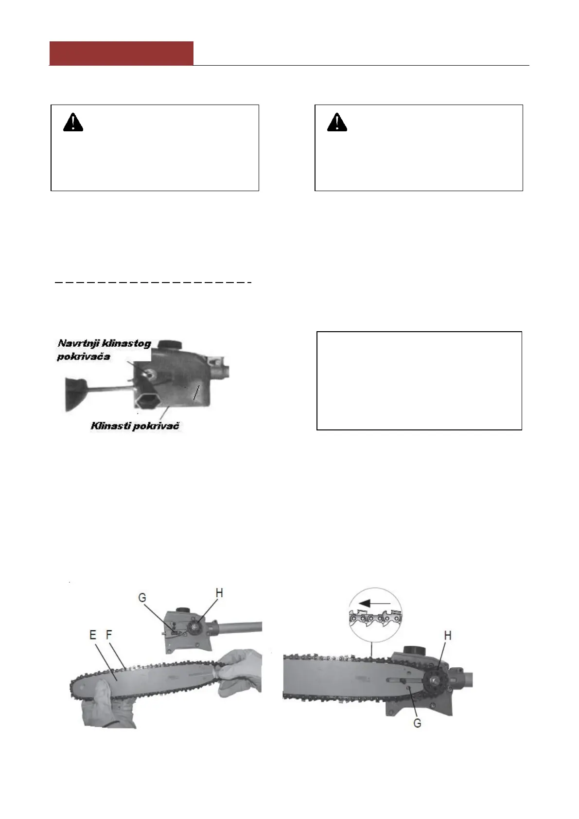 lanac oko lančanog točka (stavka H). Postarajte se da se zupci lanca sigurno udenu u lančani točak.