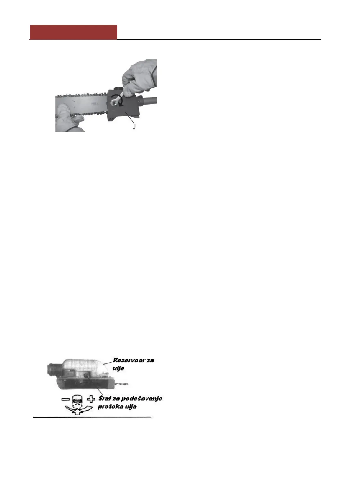 Lanac mora biti pravilno stegnut kako bi se osigurao bezbedan rad. Ako se lanac testere može podići za
