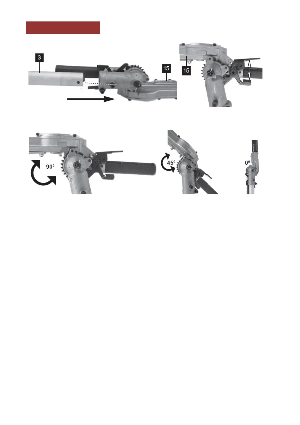 Podesite nagib otključavanjem kočnice. Trimer za živu ogradu može se nagibati od 0 ° to 90 °.