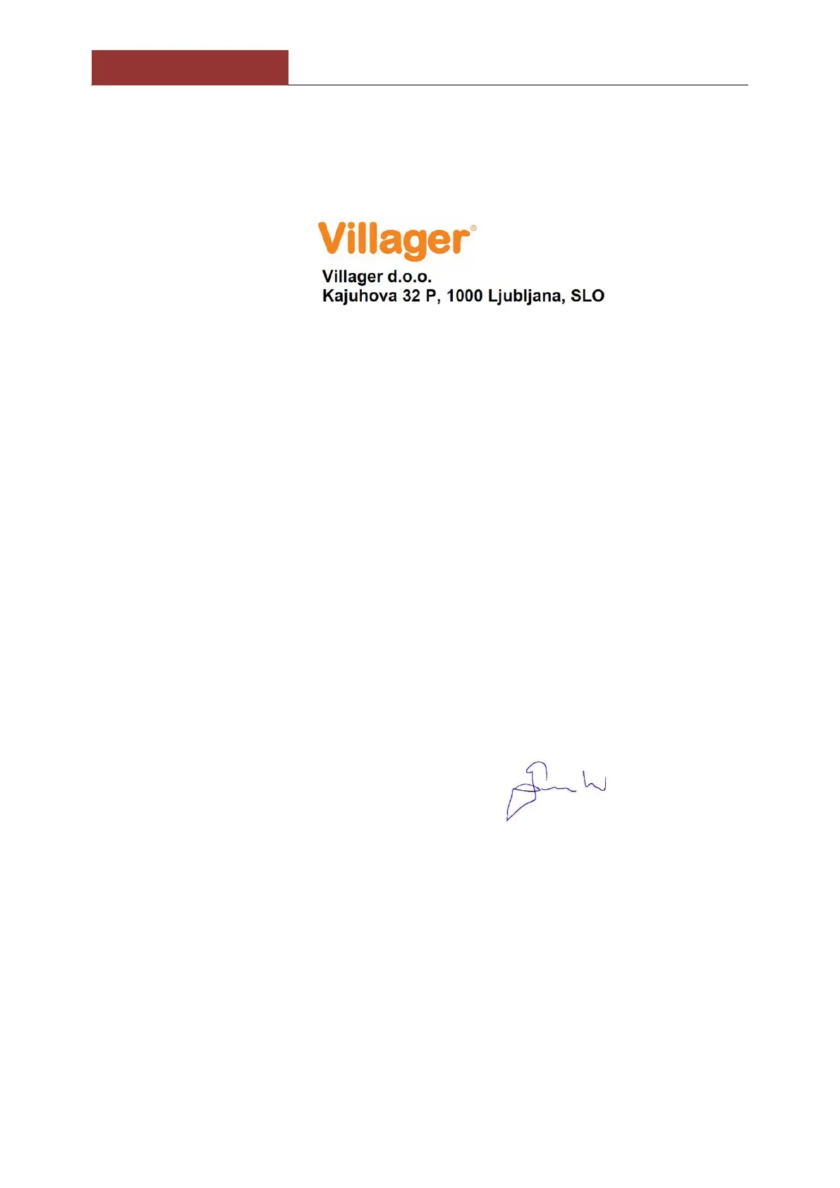 адрес на компанията Villager Д.O.O, Каюхова 32 P, 1000 Любляна.