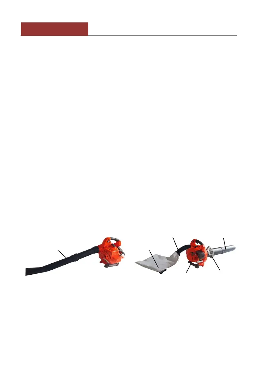 7. Do not manually insert objects into the blower/vacuum tube.