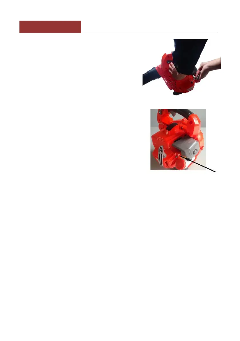 Motordeckel. Ziehen Sie vorsichtig am Startseil