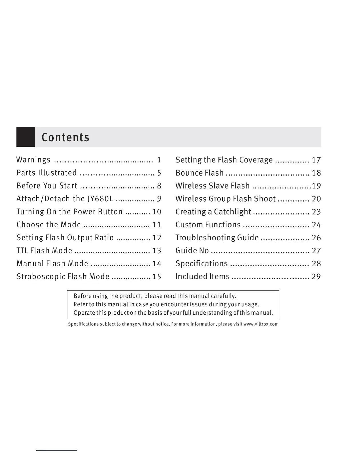 Viltrox JY680L - Contents