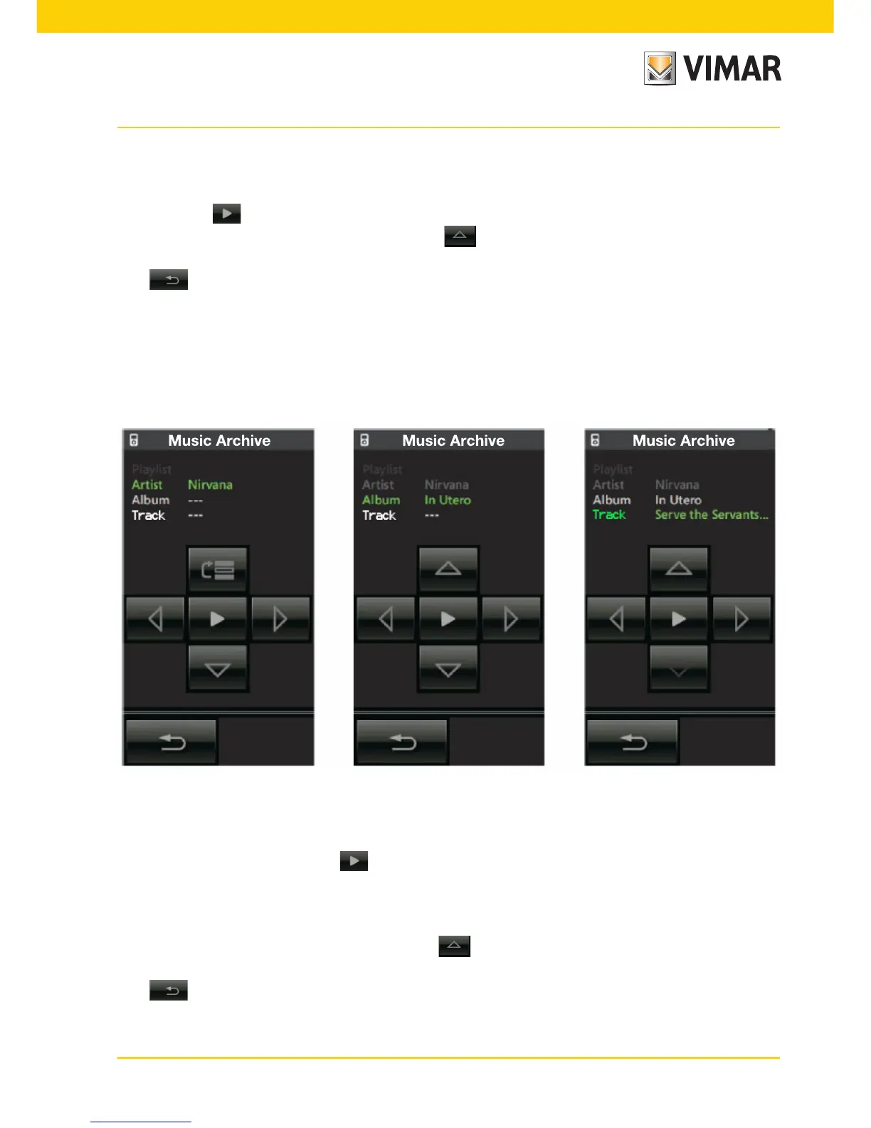 confirmation button is enabled (icon ) to start playing the active selection, automatically returning to the