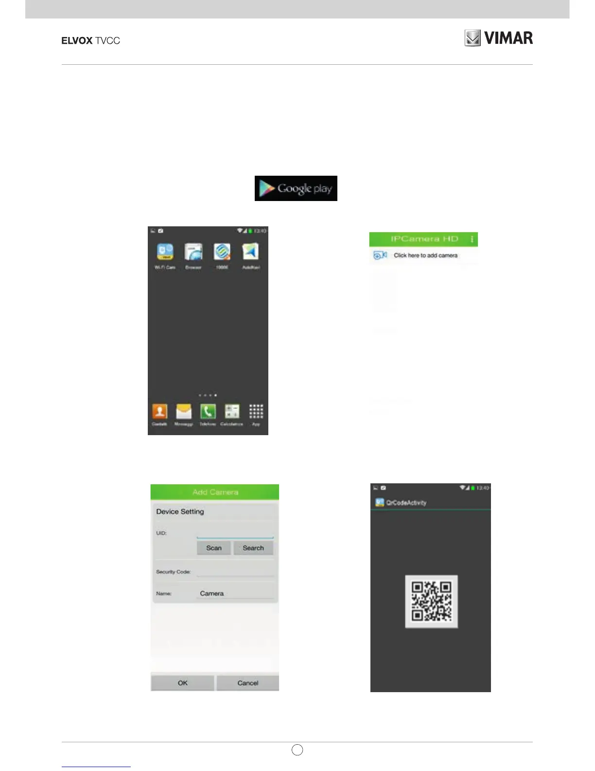 Gli utenti possono scaricare l'App client dallo shop Google Play, parola chiave di ricerca "Elvox WiFi Cam" per