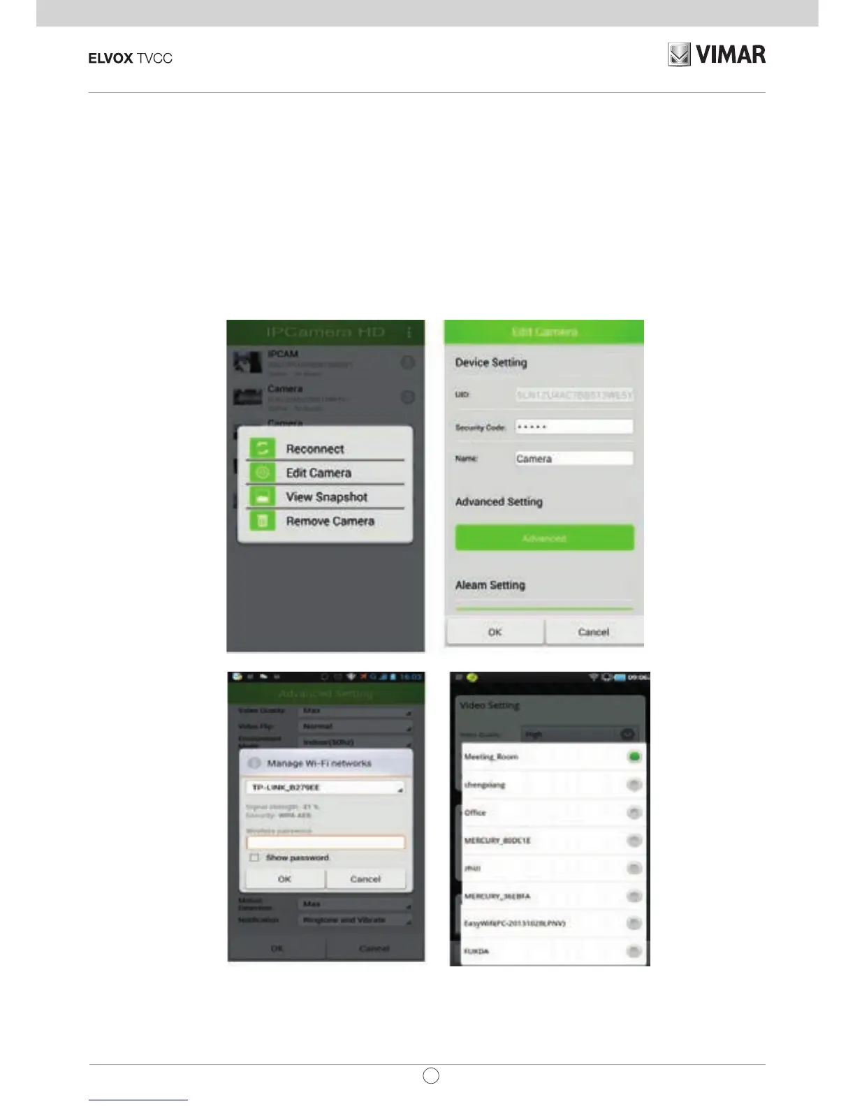 Nota: In “Edit Camera” (Modica telecamera) è possibile eettuare le impostazioni “Security code setting” (Impostazio-