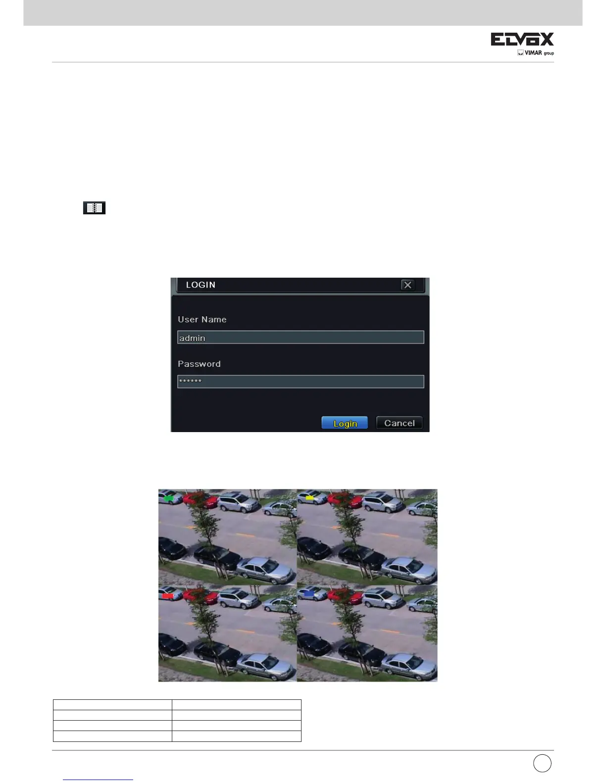 User can login or log off the DVR system. Once logged off the user cannot do any other operation except changing the multi-screen display.