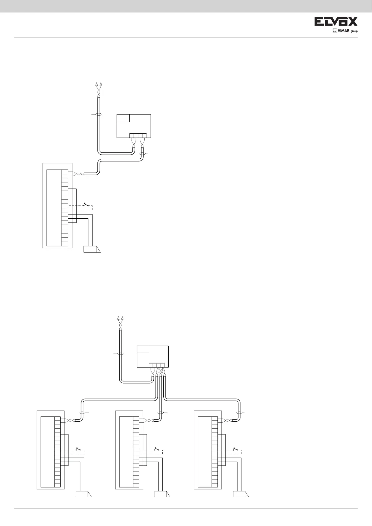 Schema di collegamento unità elettronica singola audio o video / Wiring diagram for single audio or video electronic unit