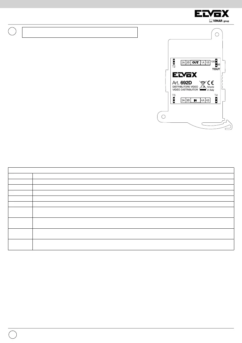montante (o borne OUT não é usado) o jumper TOUT deve ser inserido em 100, se se usar o cabo Elvox, 50 se se usar o cabo CAT5