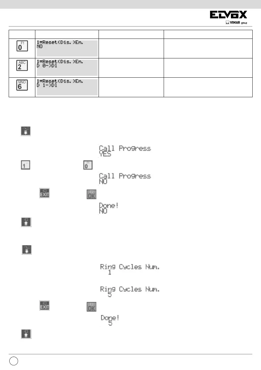 Press to move to the next item by which you can change the number of call cycles emitted by the speech unit. Each ringtone cycle