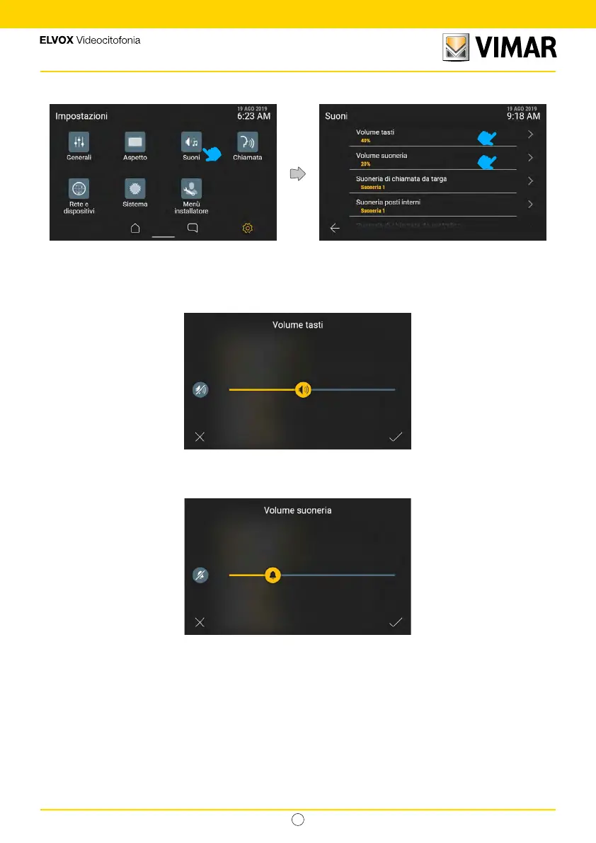 changing the volumes of the specic call sounds and ringtones from the Switchboard, Entrance panels, Indoor stations