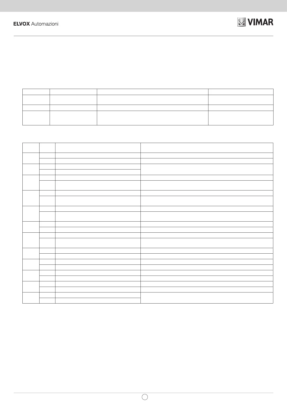 OFF Ingresso P.IN normalmente aperto Utilizzabile per eventuale pulsante di sola apertura