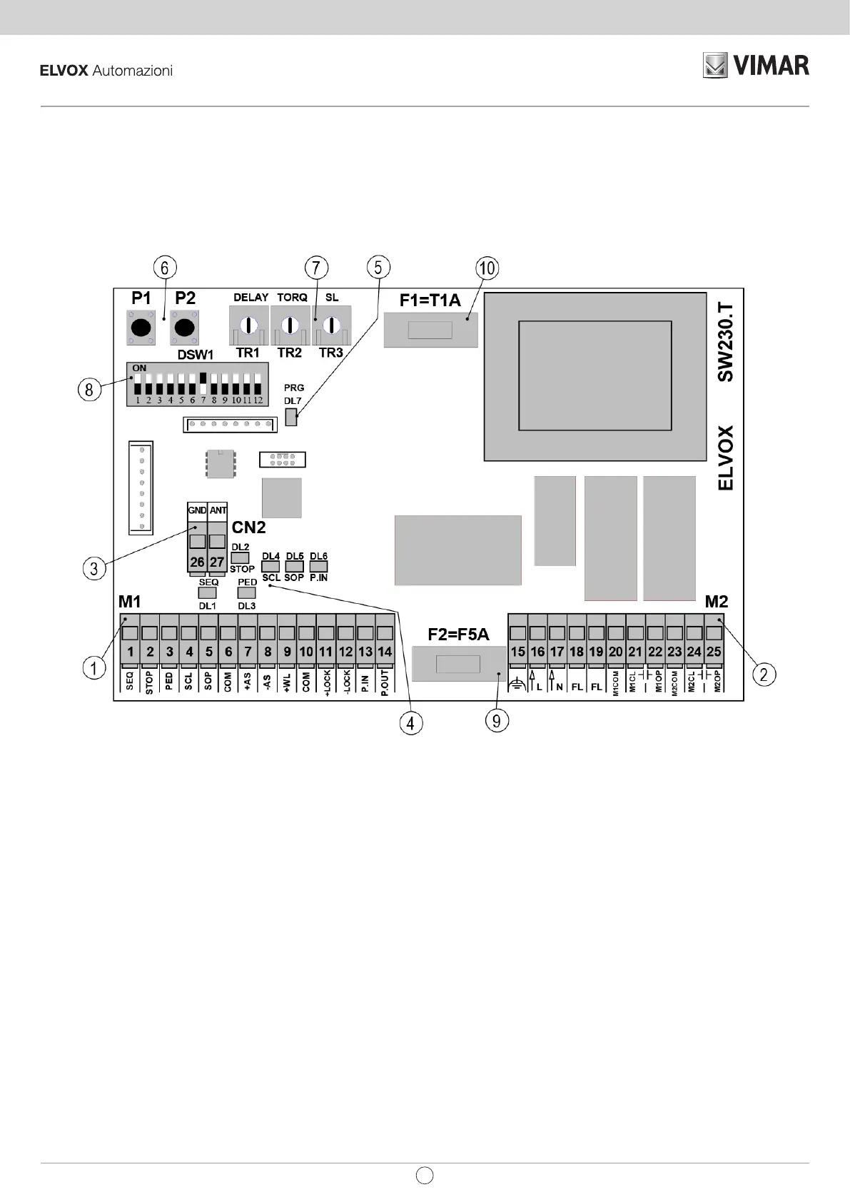 10. Protection fuse for the secondary transformer output (24 VDC T1 A delayed)