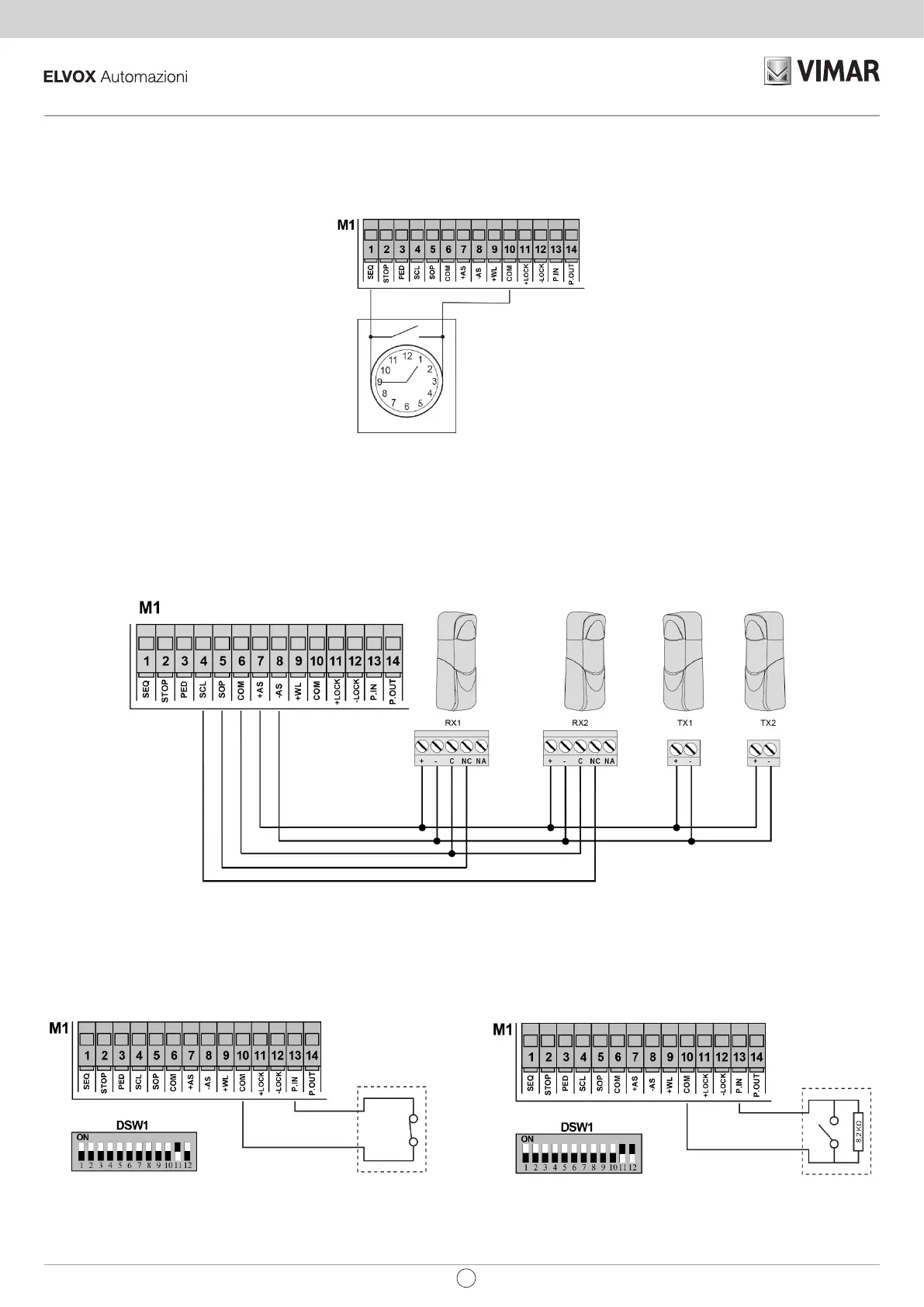 With Dip switch 11 and 12 ON, programmable input P.IN is congured for the use of a resistive sensitive edge 8K2. The triggering of this input, until it is