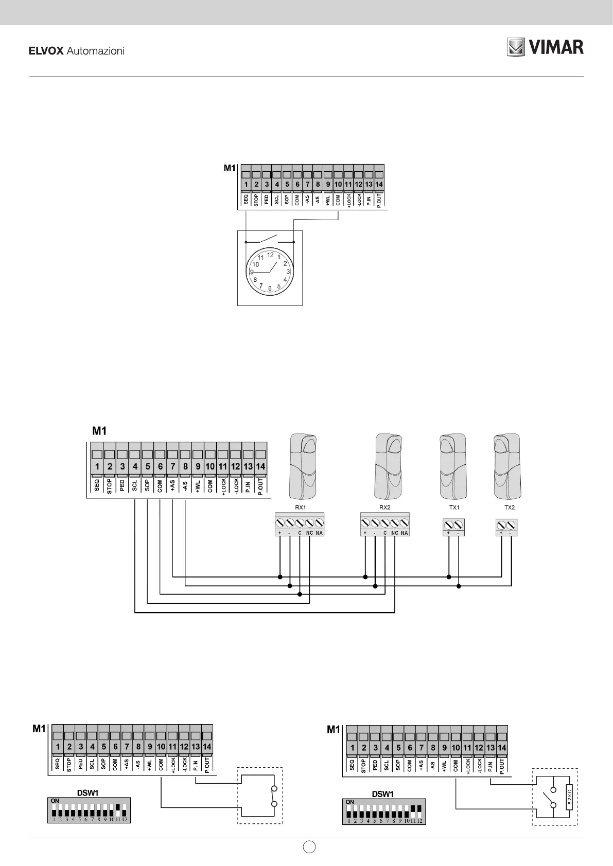 Respecter impérativement la polarité pour l’alimentation des cellules photo-électriques. Les contacts SCL et SOP sont normalement fermés.