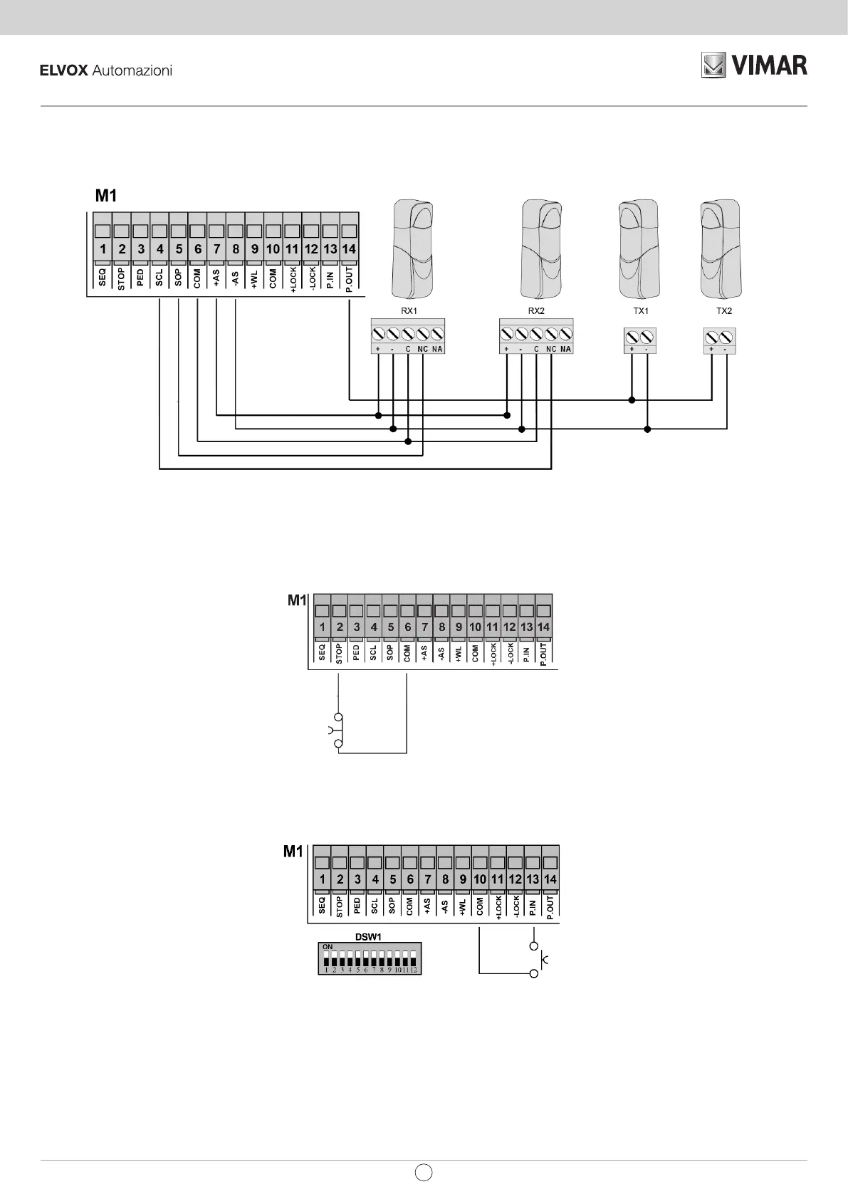 Der Eingang P.IN mit auf OFF gesetztem Dip-Schalter 11 ist ein Arbeitskontakt. Das Schließen des Kontakts bewirkt das Önen des Tors.