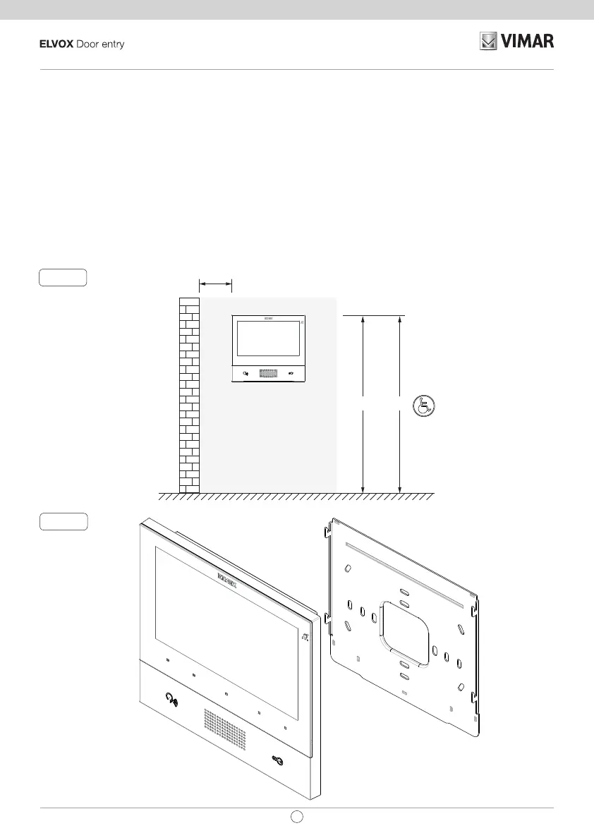 1. Fixe a placa à parede, com suporte metálico, em caixa: circular 2M (Vimar V71701), 3M (Vimar V71303, V71703) hori