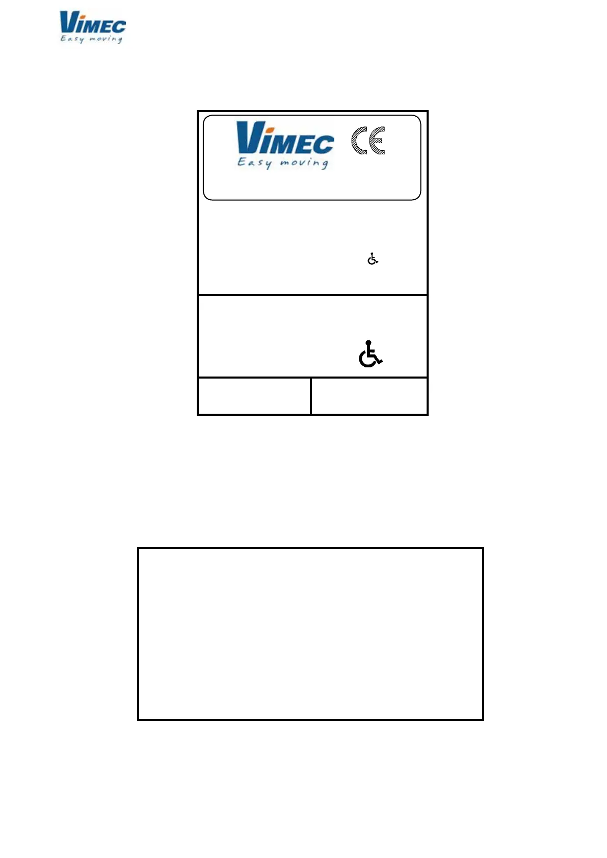 vimec V 64 - Stairlift Identification and Manufacturer Details; After-Sales Service Information