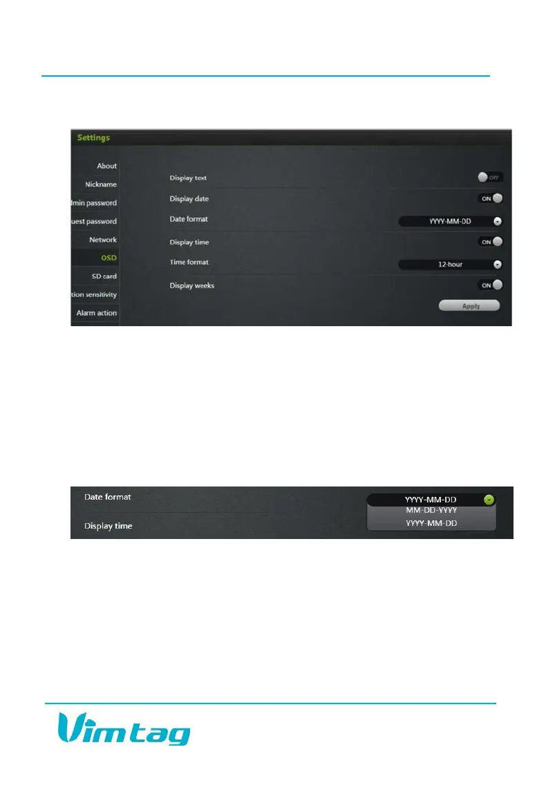 In the OSD tab, you are able to manage what displays on the video screen.