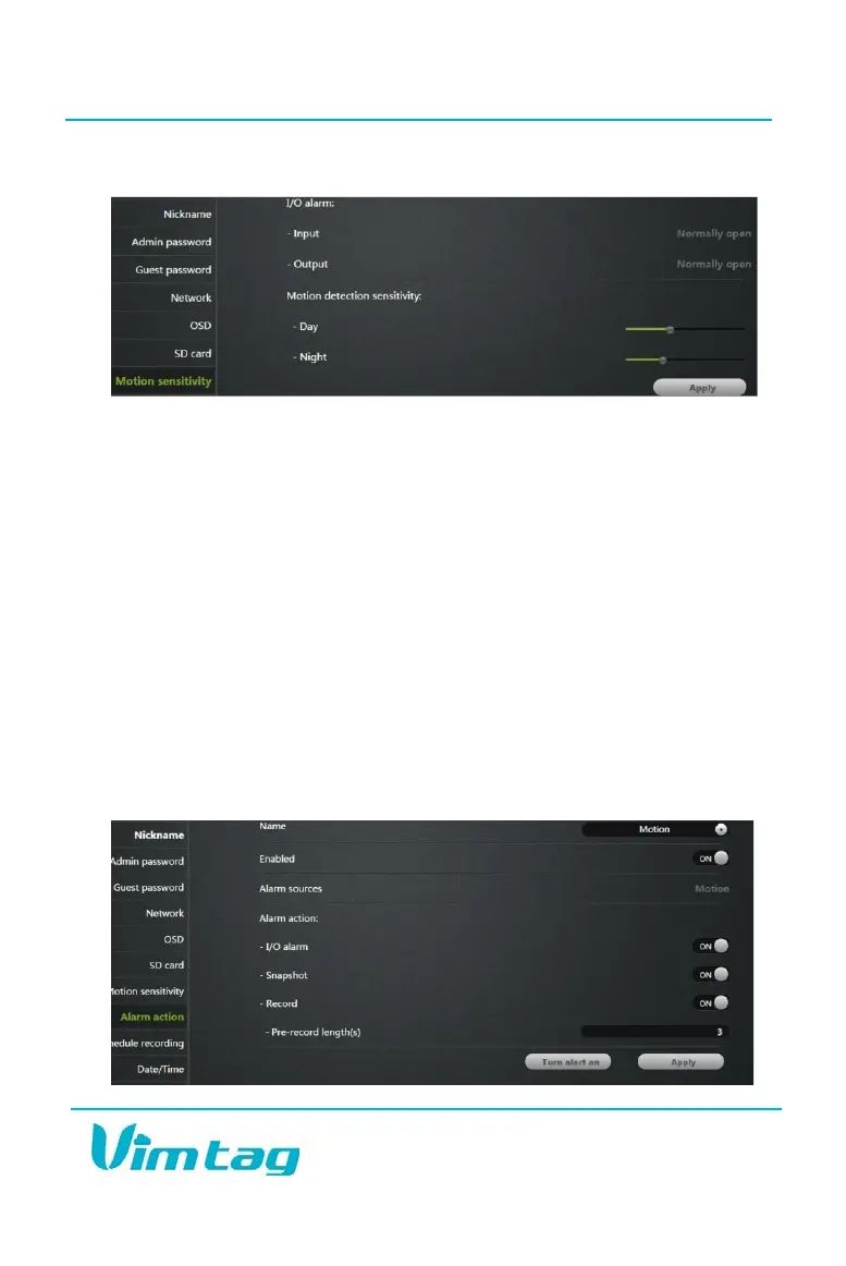 able to choose between Motion and I/O alarms. The Motion alarm is the