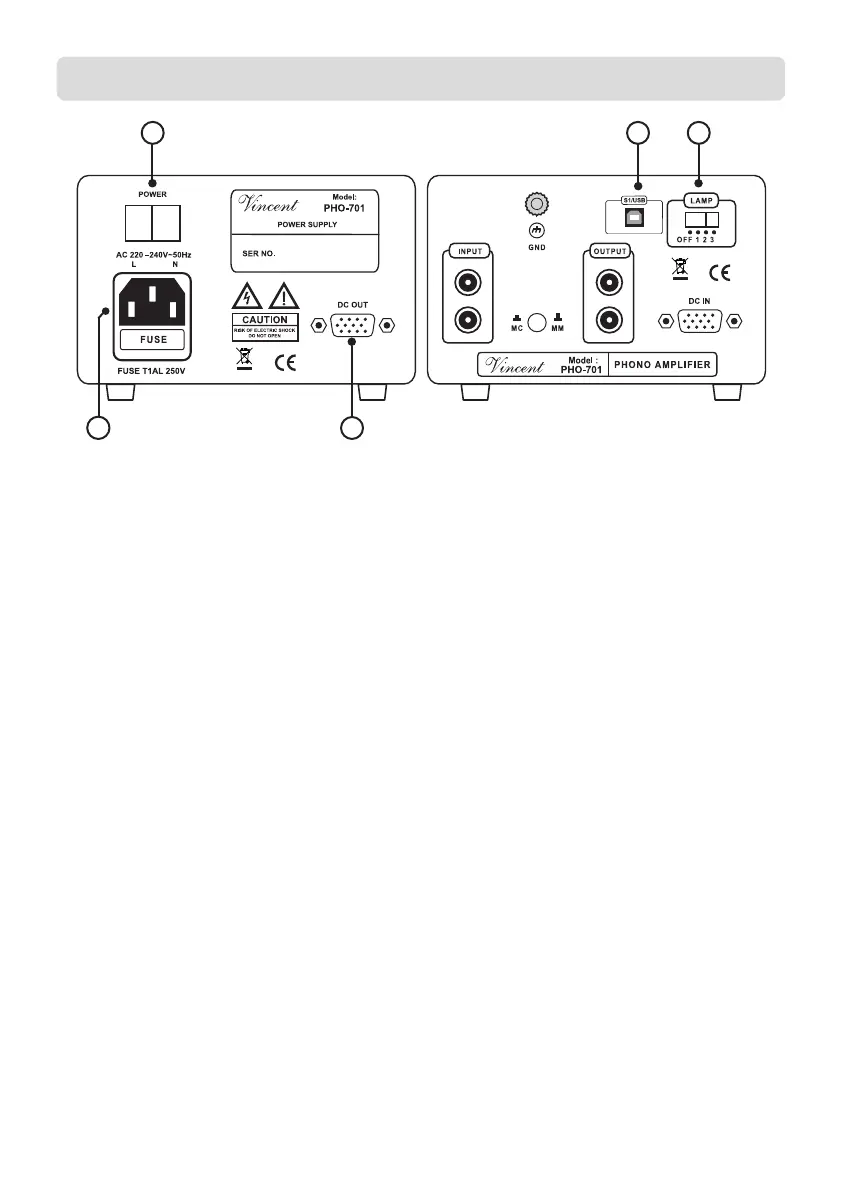앰프의 DC IN 단자와 DIN 케이블로 연결