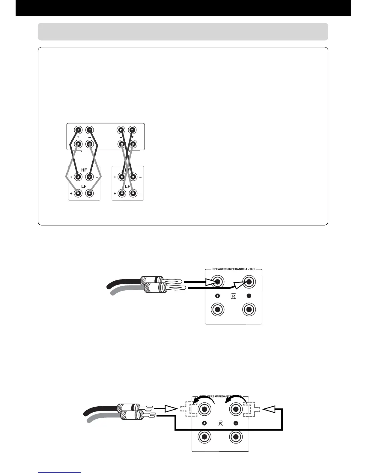 (rechts, links) gehörenden Lautsprecher-Klemmenpaare verwendet werden. Anders als beim Anschluss