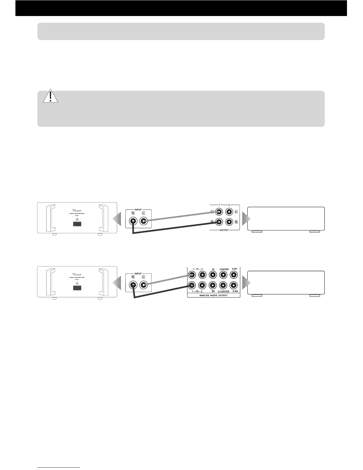 usually marked with “AUDIO OUTPUT” must be connected to the stereo input of this main amplifier.