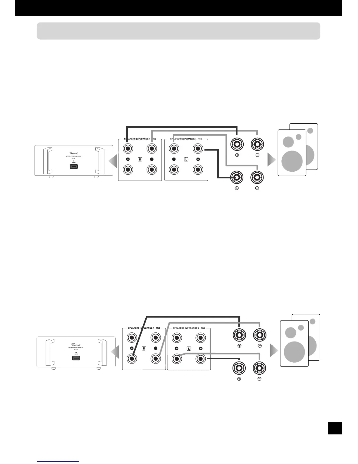 + » de l’amplificateur doit être reliée à la borne désignée « + » du haut-parleur.