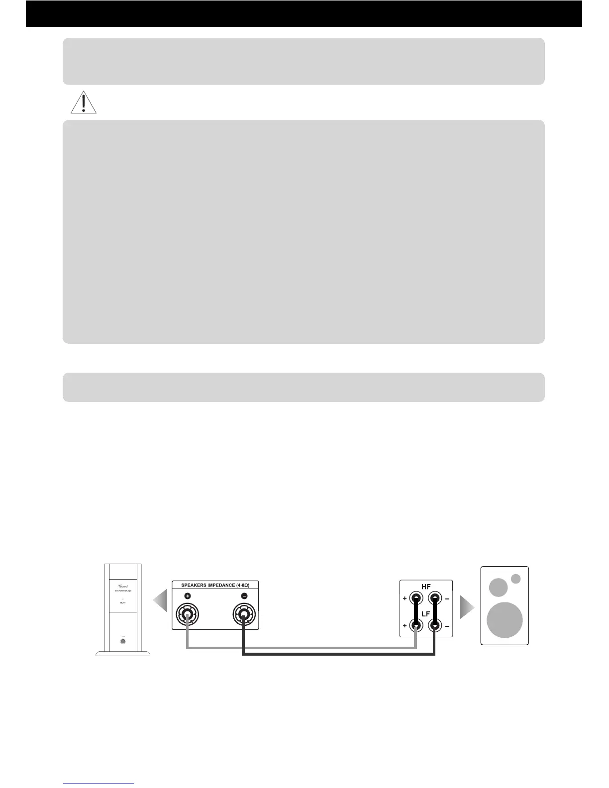 zugeordneten Lautsprechers verbunden. Der mit „–“ markierte Anschluss des Verstärkers wird mit einem der