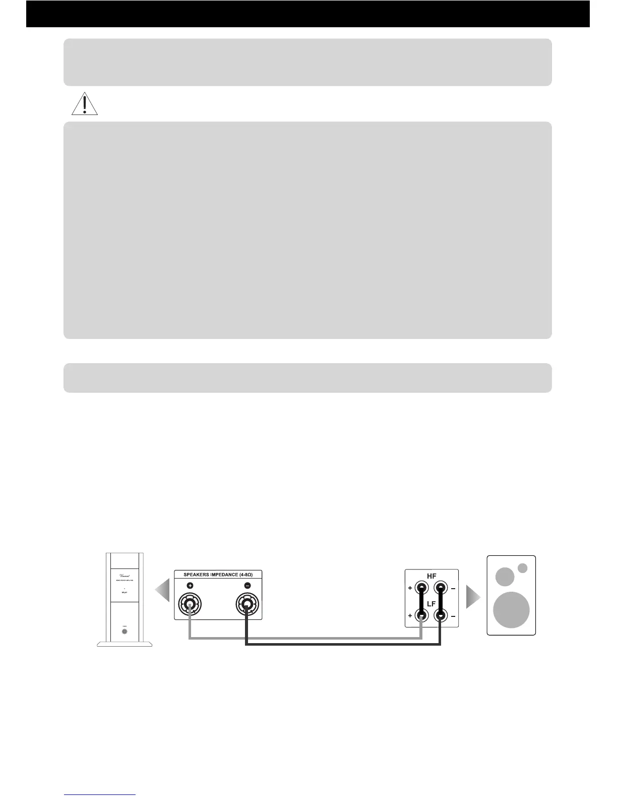 ked “+” in the amplifier's terminal must be connected with a speaker's connector screw marked “+” as well.