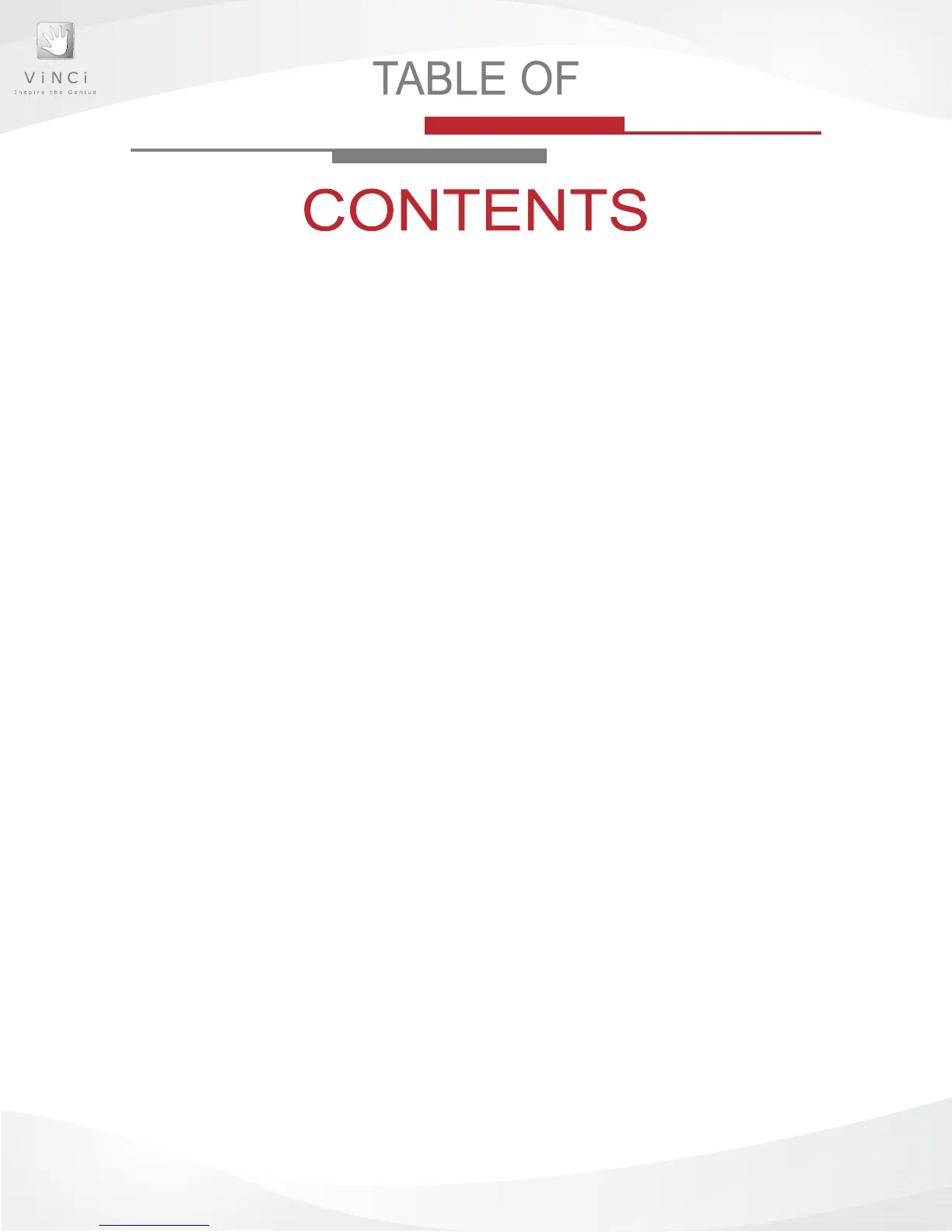 VINCI Tab Touch Screen ...............................................................9