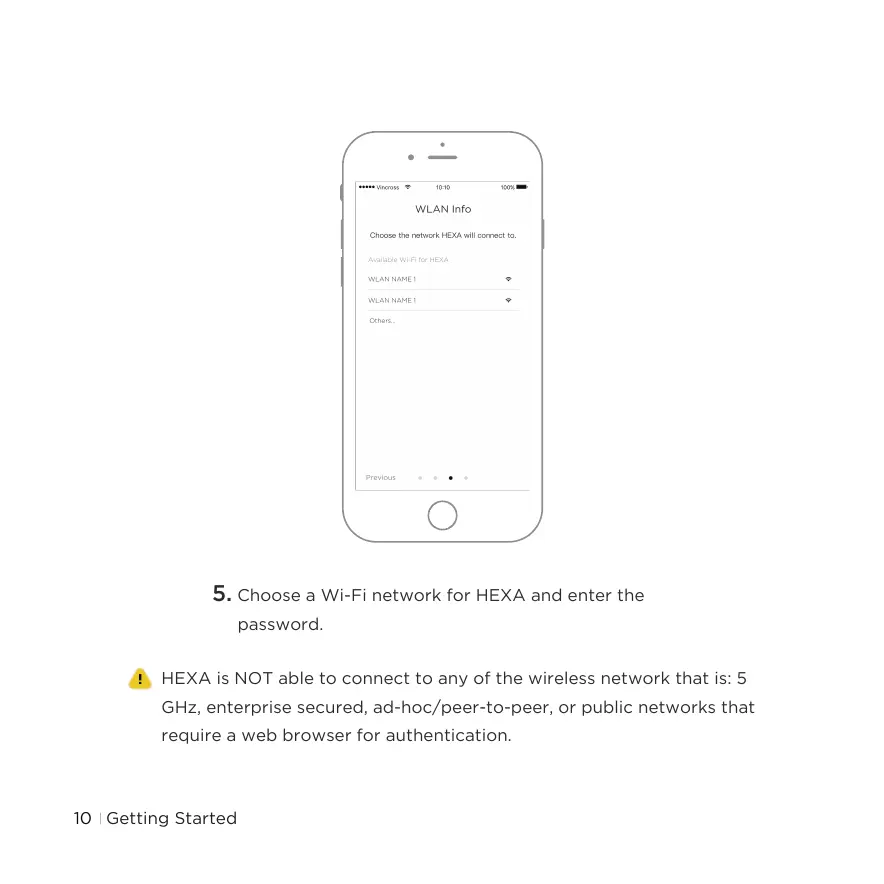 5. Choose a Wi-Fi network for HEXA and enter the