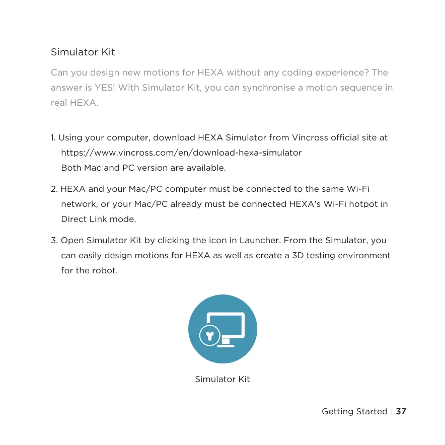 1. Using your computer, download HEXA Simulator from Vincross ocial site at