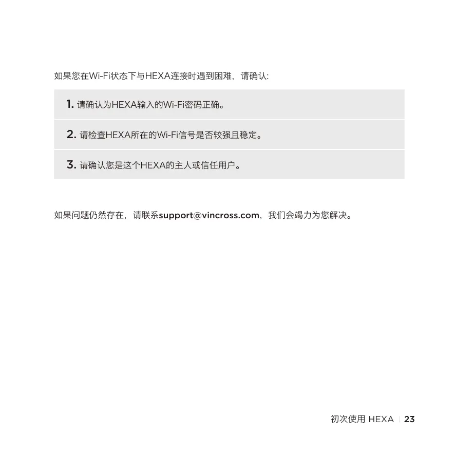 如果您在Wi-Fi状态下与HEXA连接时遇到困难,请确认: