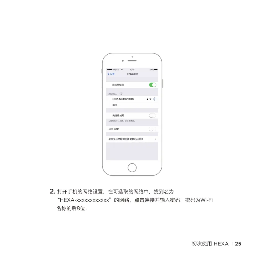 “HEXA-xxxxxxxxxxxx”的网络,点击连接并输入密码,密码为Wi-Fi