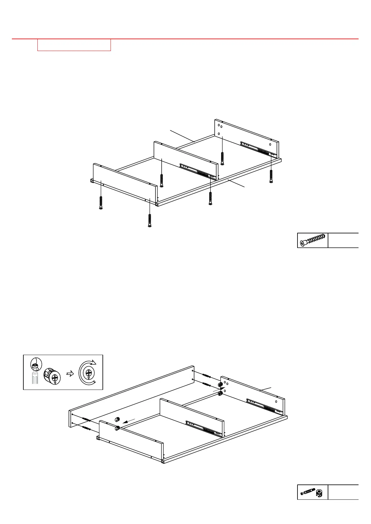 part from STEP 2 using bolts(J),make sure drawer rollers are close to the side
