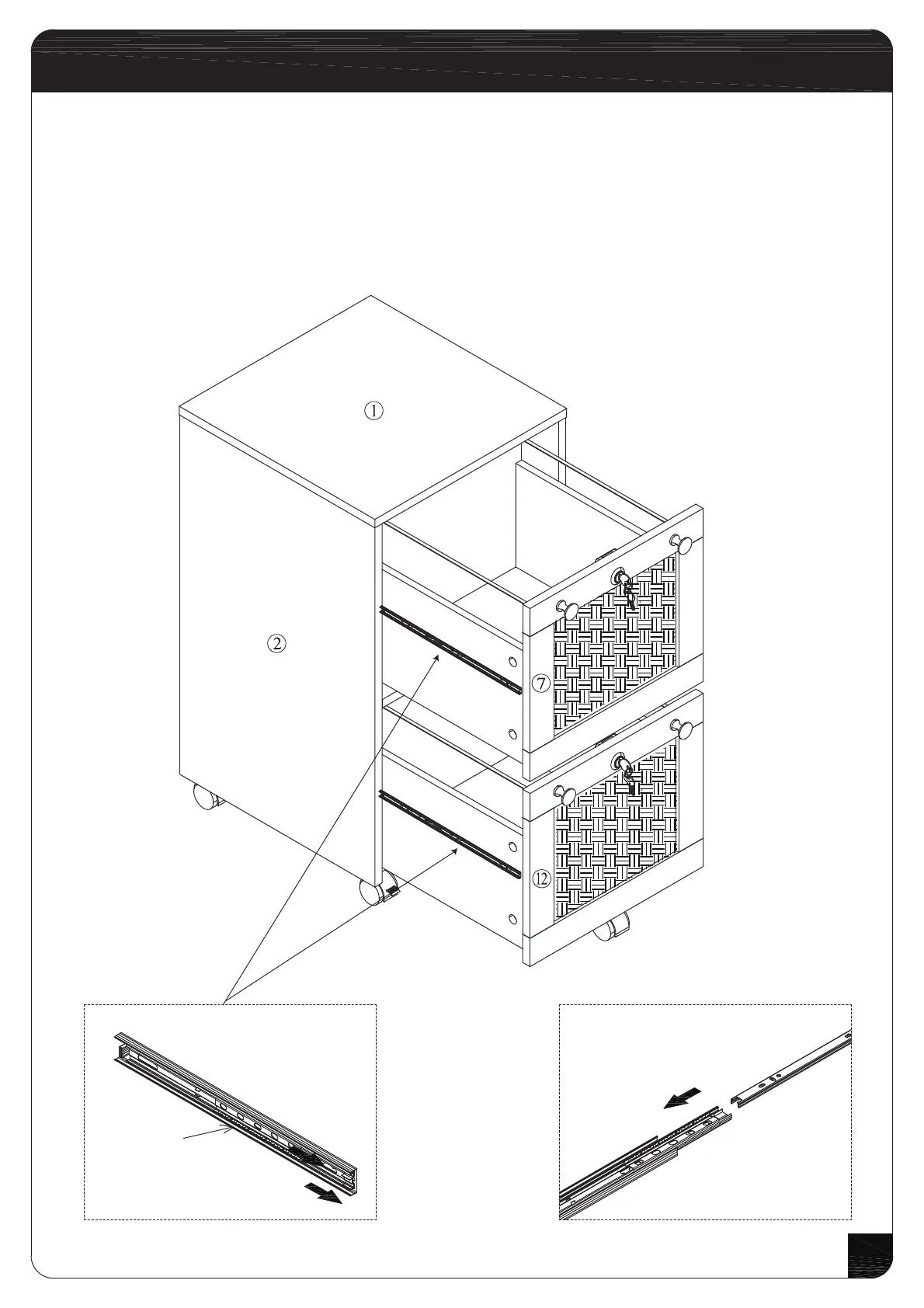 Begin by pulling out the drawer slide (J-1) along with the ball to