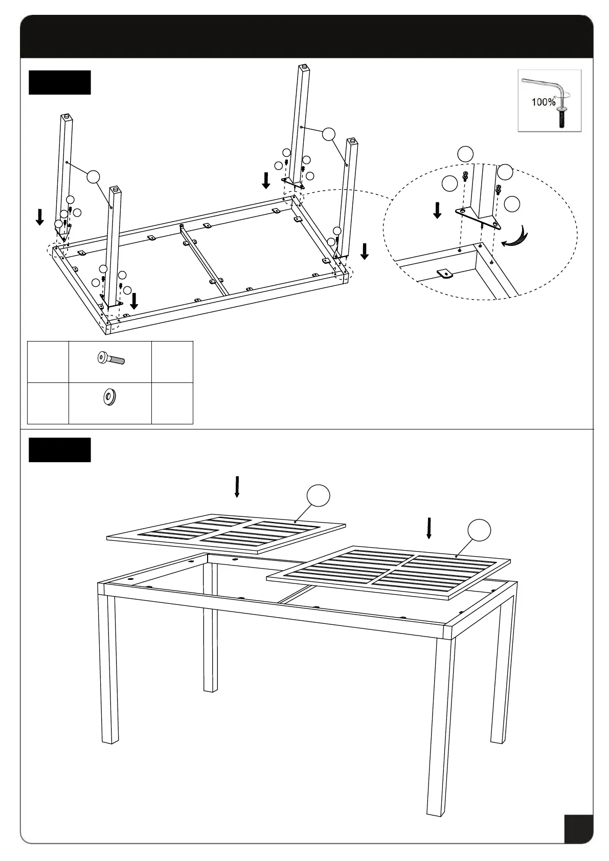 VINGLI PB0PWTW - Assembly Steps - Table Continued; Step 3: Attaching Table Legs; Step 4: Installing Table Tops