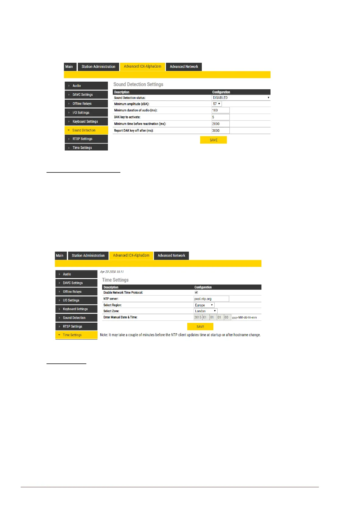 ● Select Advanced ICX-AlphaCom > Time Settings from the menu