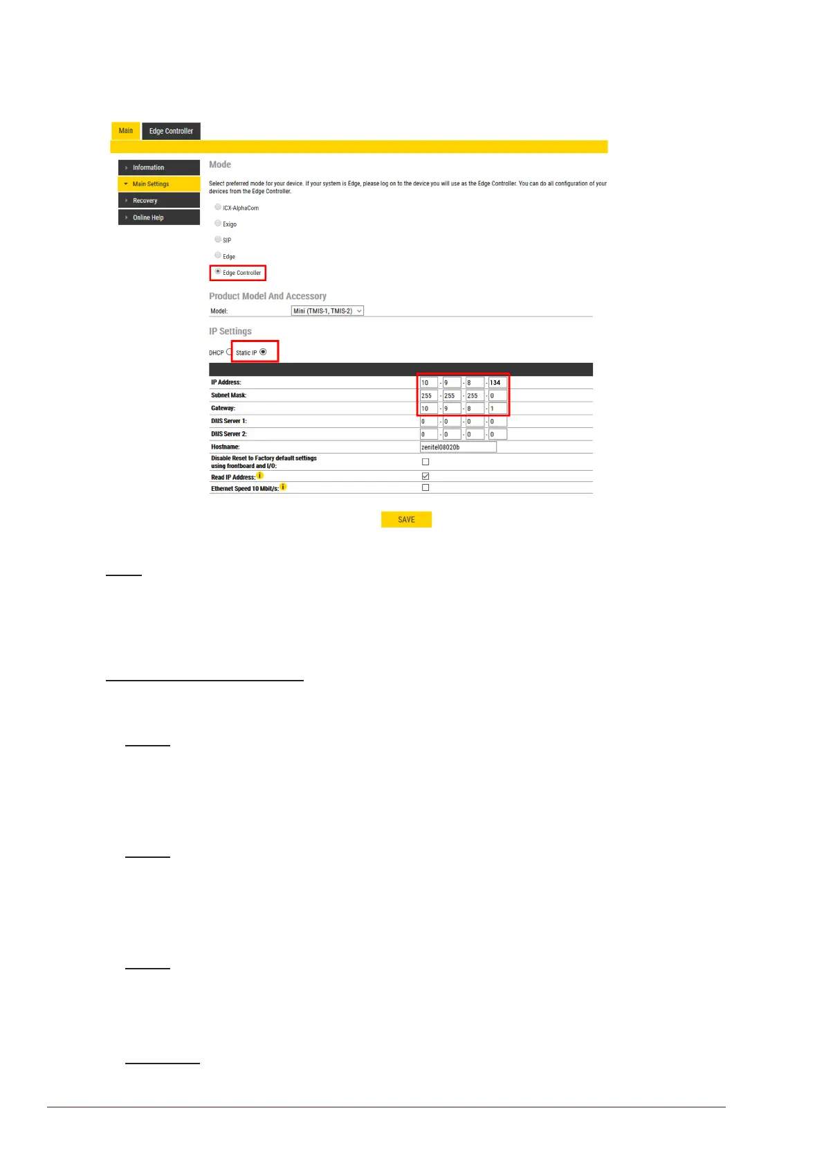 ● Select the Edge Controller radio-button