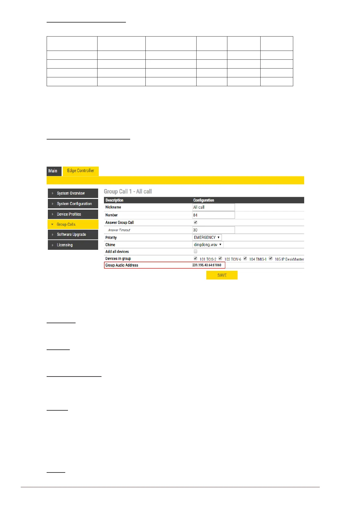 The Group Call properties are congured via the Edge Controller.