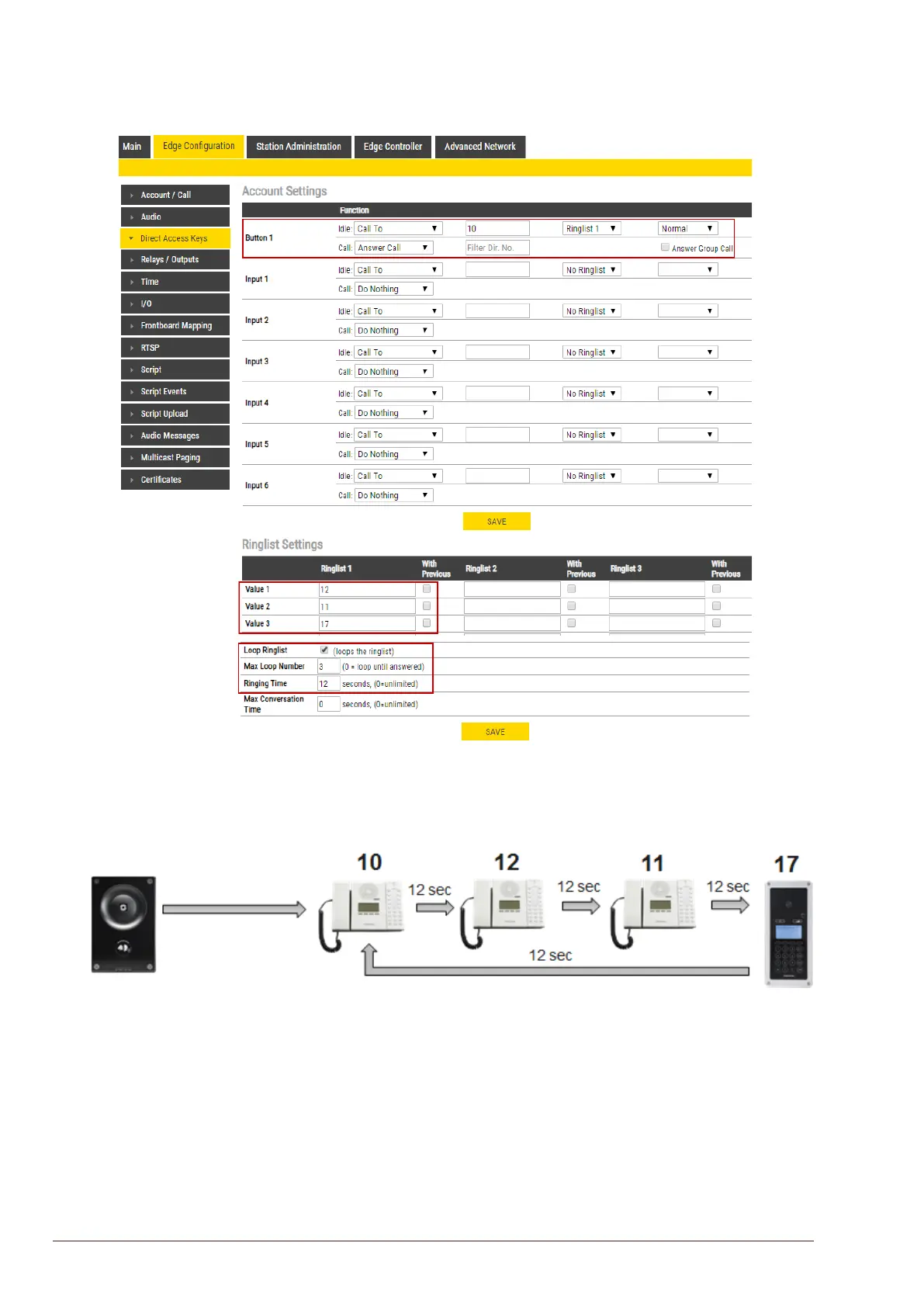 The above example ringlist settings may be illustrated as follows: