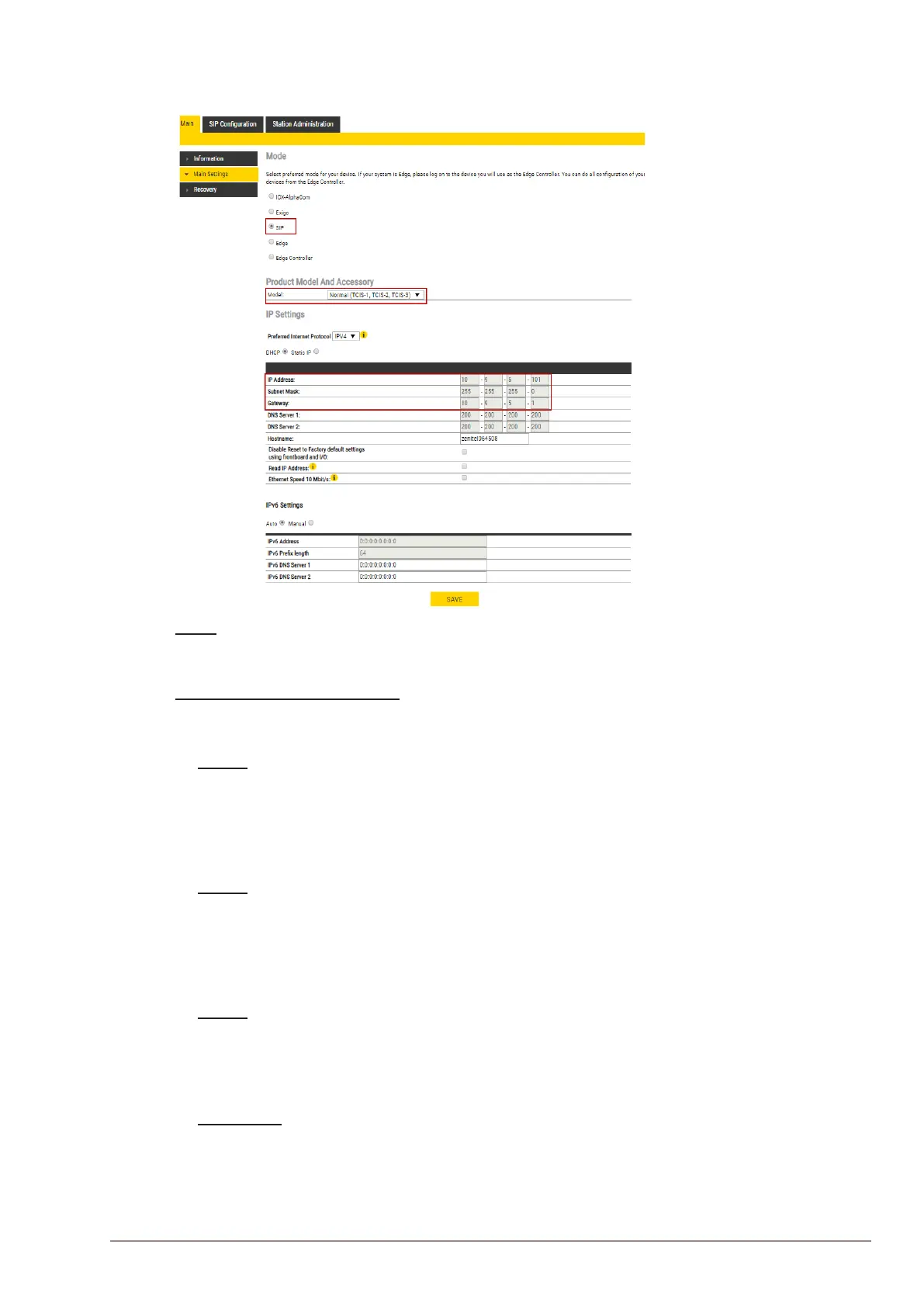 ● Select the SIP radio-button