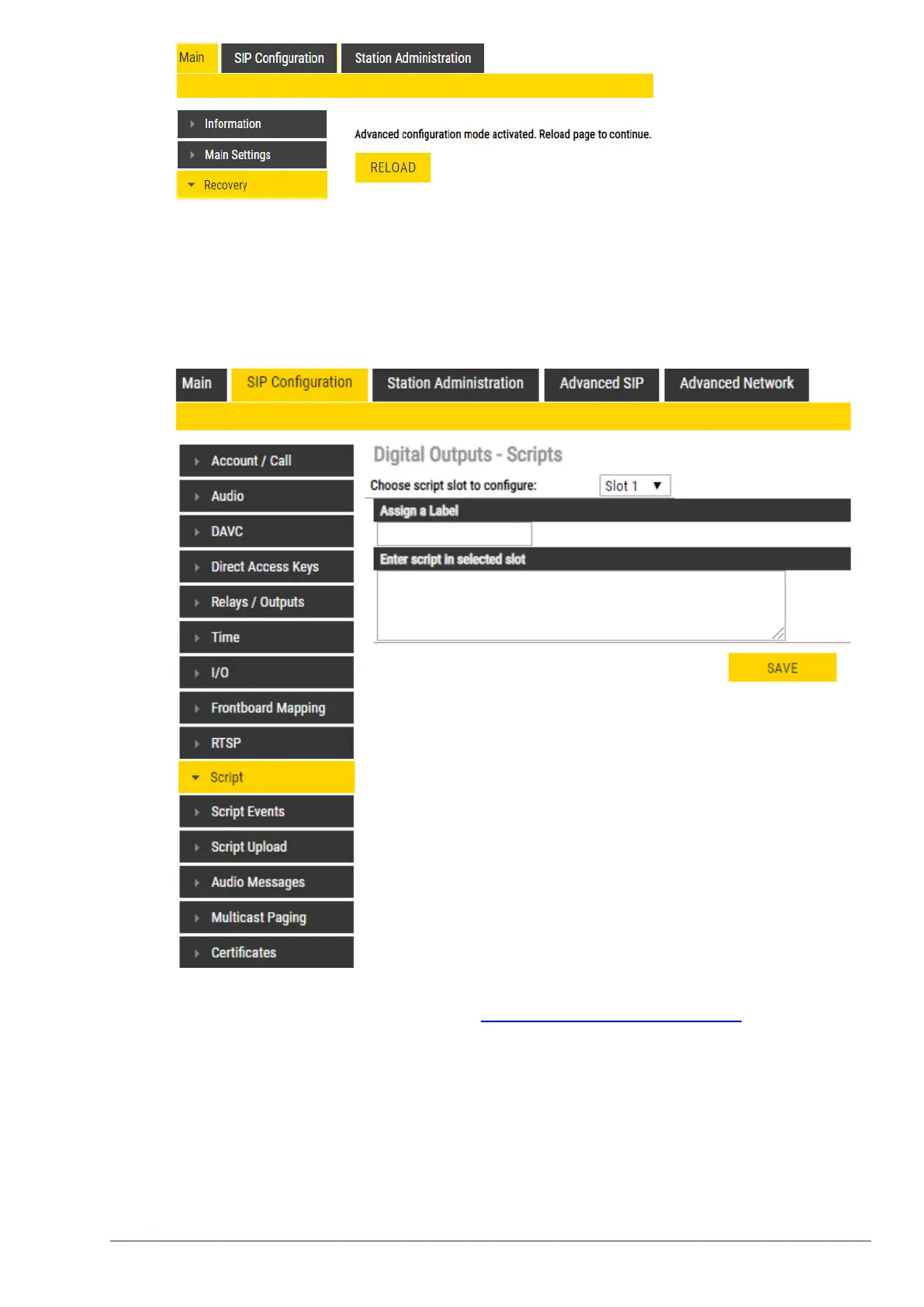 For more information on Script settings, see wiki.zenitel.com/wiki/Virtual_I/O_(SIP)