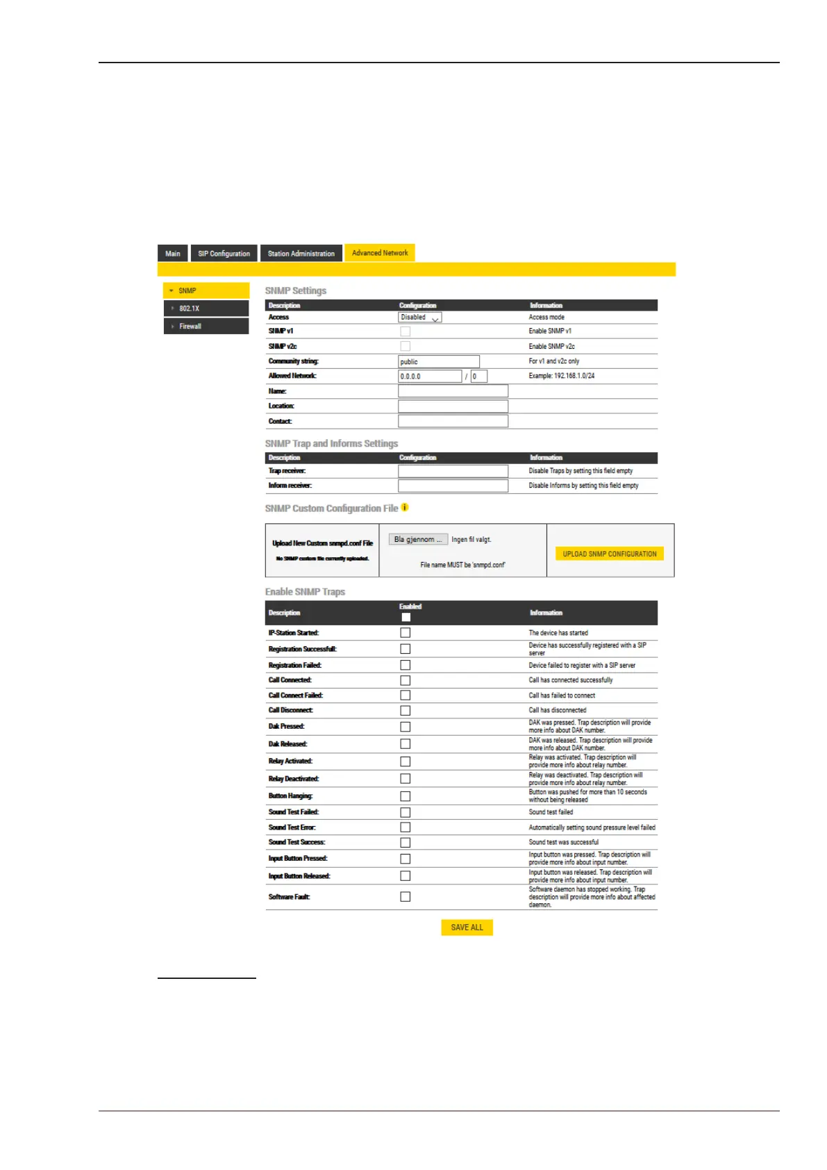 ● Select Advanced Network > SNMP