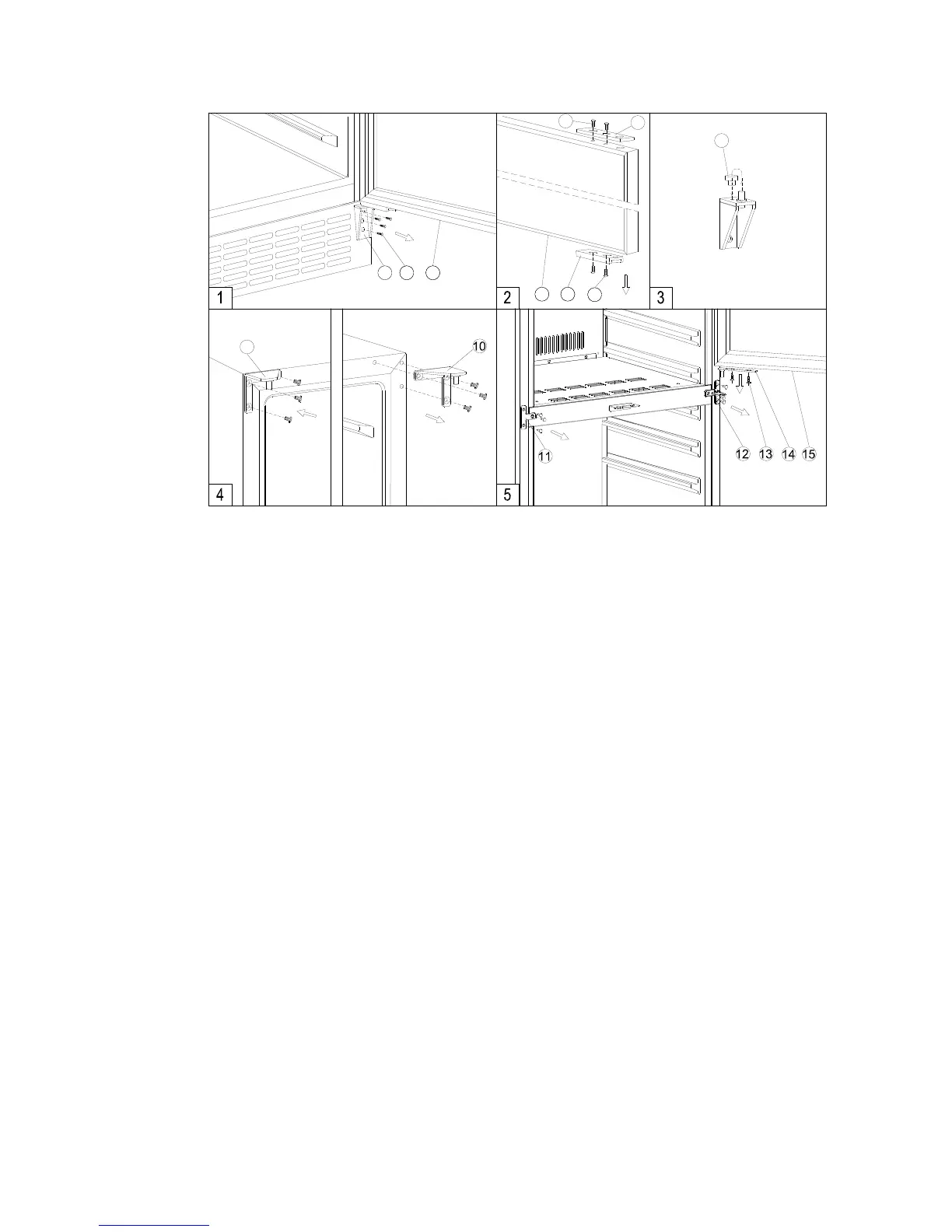 8. Set the upper glass door to the designated position and install the two lock screws to connect